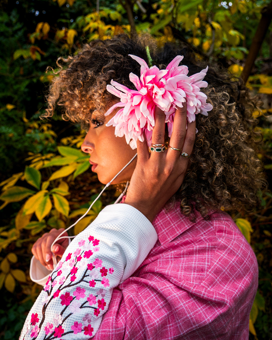 Mon arrière‑grand‑mère et ma grand‑mère étaient fleuristes. Quand j’étais petit, je les accompagnais vendre des fleurs au marché. Cette passion pour les fleurs s’est naturellement retrouvée dans mes vêtements et mes shootings.